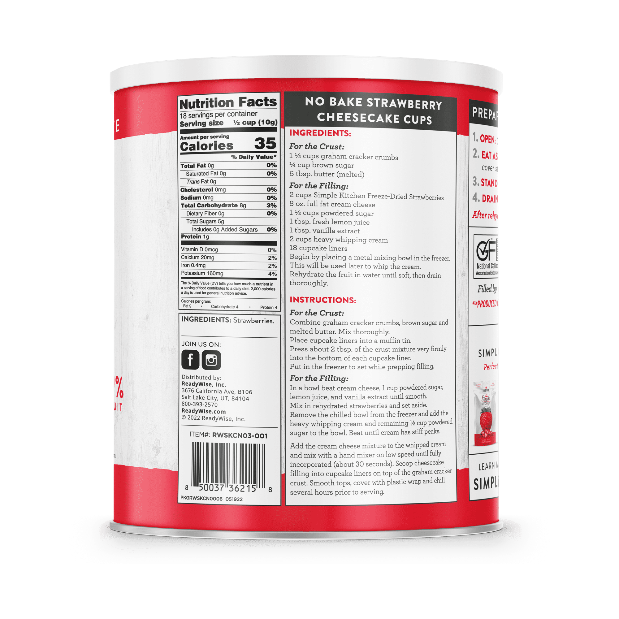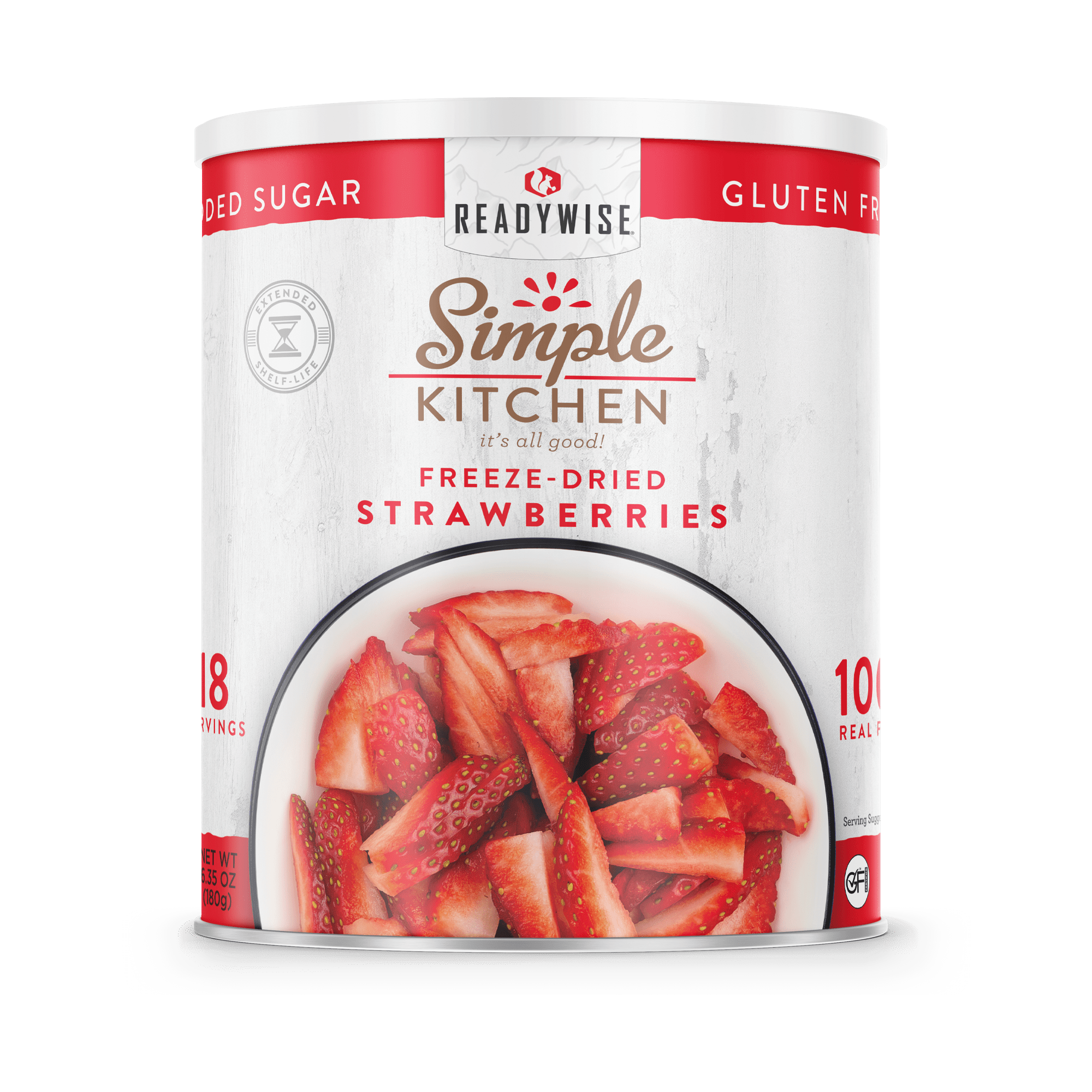 This #10 can of Simple Kitchen freeze-dried sliced strawberries offers a lightweight, shelf-stable fruit option packed with natural sweetness and nutrients. Ideal for survival food storage, it provides a nutritious addition to your emergency rations or bug-out supplies.