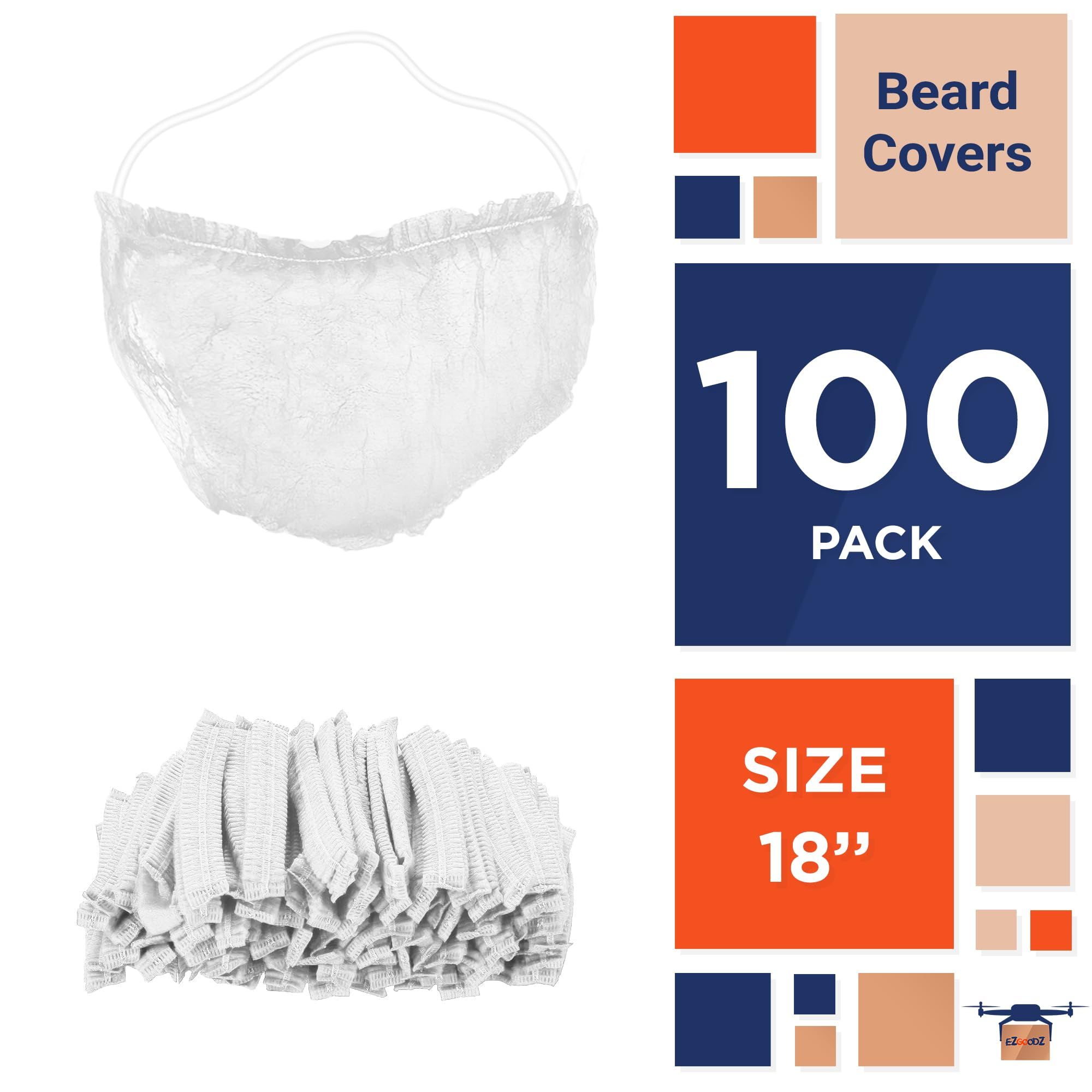 White Beard Cover 18 Inch. 100 Pack of Polypropylene Beard Guard Covers with Elastic Band. Breathable and Lightweight Disposable Beard Cover Protector. Elastic Beard Covers for Men