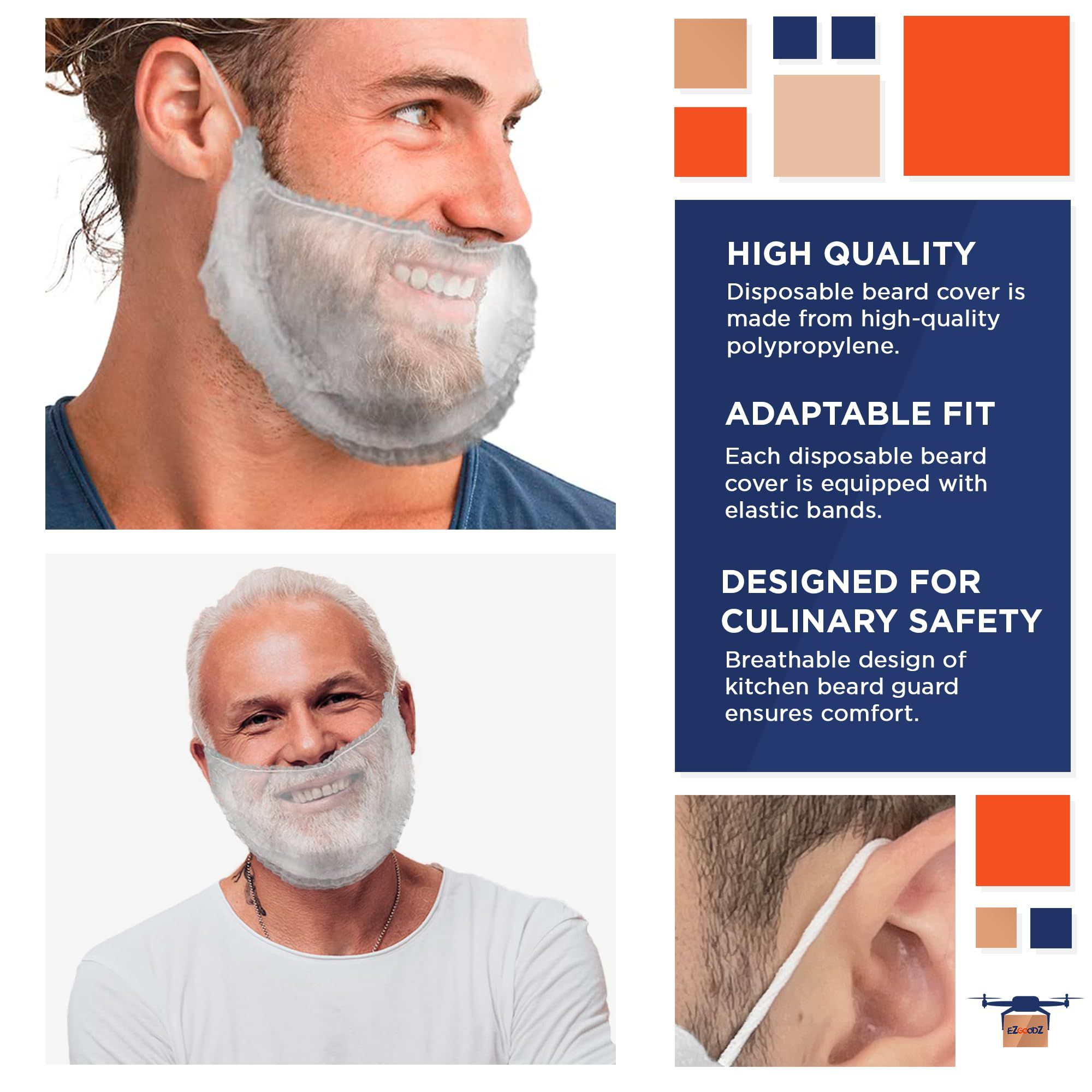 4.Adaptable Fit with Elastic Bands. Each disposable beard cover is equipped with elastic bands, ensuring a snug fit that accommodates different facial structures while ensuring hair is properly contained throughout activities.