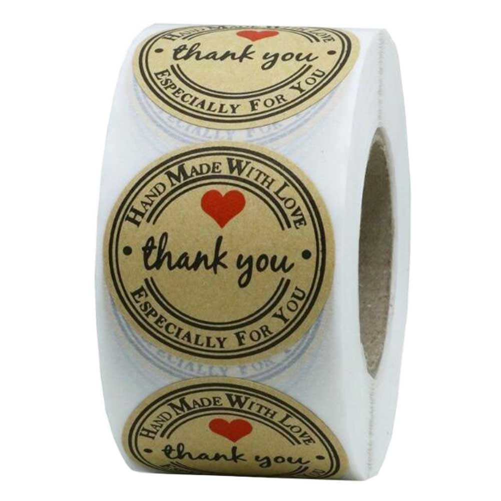 Home > 500 Pcs Kraft Red Heart Thank You Stickers Handmade Soap Stamp Baked Goods Jam Jar Stickers, 1 Roll