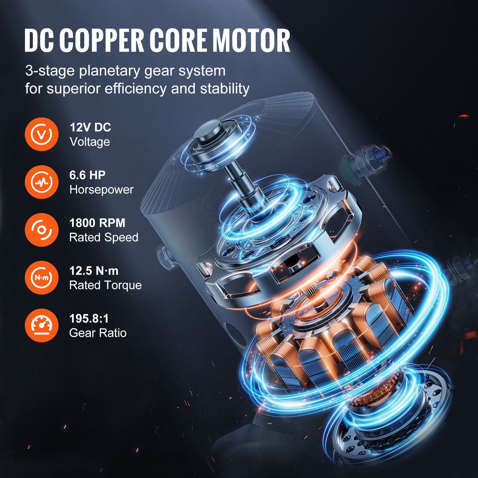2.Power that Gets You Out of Any Jam: Our truck winch is driven by a 12V DC/6.6HP copper motor, delivering consistent power when you need it most. Featuring an advanced 3-stage planetary gear system and a 195.8:1 gear ratio, this winch ensures powerful pulling capacity, even in harsh weather and the deep mud. Get ready to tackle any challenge with confidence!