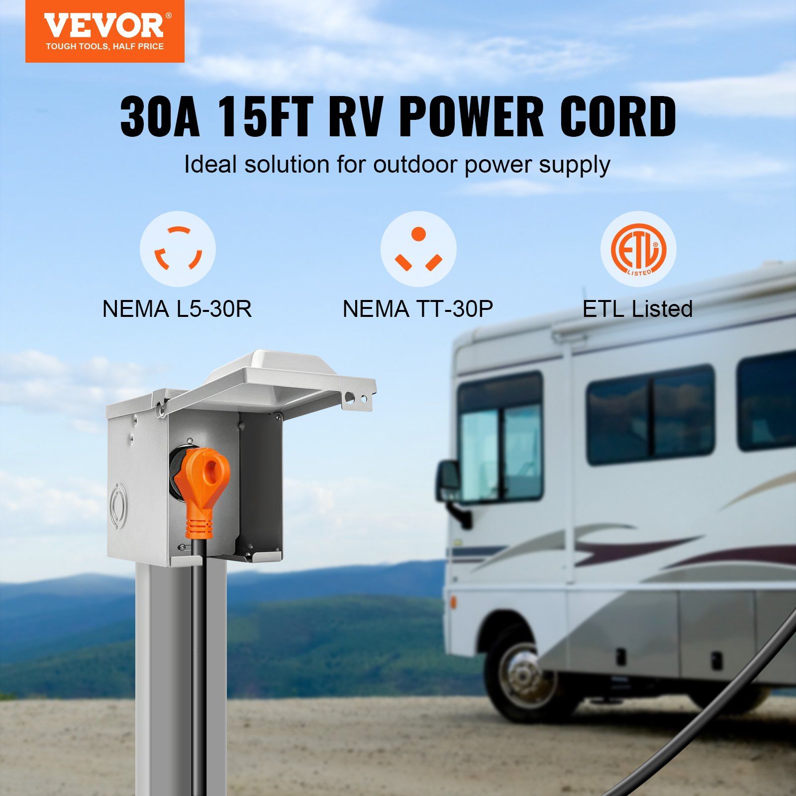 VEVOR 15 Feet RV Power Cord, 30 Amp, Heavy Duty STW 3*10AWG Generator Cord, NEMA TT-30P Male NEMA L5-30R Female Plug VEVOR 15 Feet RV Power Cord, 30 Amp, Heavy Duty STW 3*10AWG Generator Cord, NEMA TT-30P Male NEMA L5-30R Female Plug VEVOR 15 Feet RV Power Cord, 30 Amp, Heavy Duty STW 3*10AWG Generator Cord, NEMA TT-30P Male NEMA L5-30R Female Plug